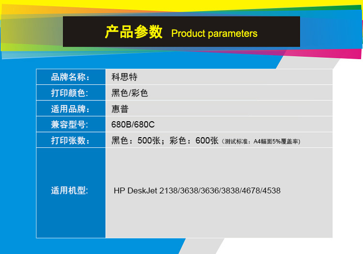 商品名称:科思特 680XL BK 黑色墨盒 适用惠普DeskJet2138/3638/3636/3838/4678/4538