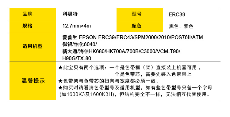 适用机型:EPSON ERC39/ERC43/SPM2000/2010/POS76II