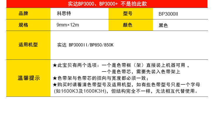 商品名称:科思特 BP3000II/BP850K色带架 适用实达BP3000II/BP850K 黑色