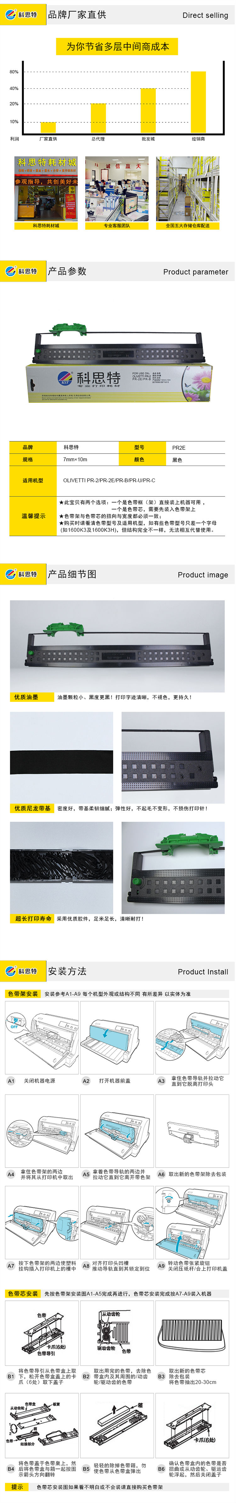 科思特 PR-2/PR-B (行业专供) 色带架 适用好利获得PR-2E/PR-U/PR-C/PR-D/PR-S/PR-M/ PR-T中航信息4300A/南天MX20 黑色