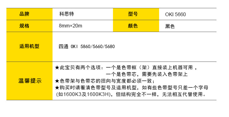 商品名称:科思特 5860/5660 色带架 适用四通 OKI8800 黑色