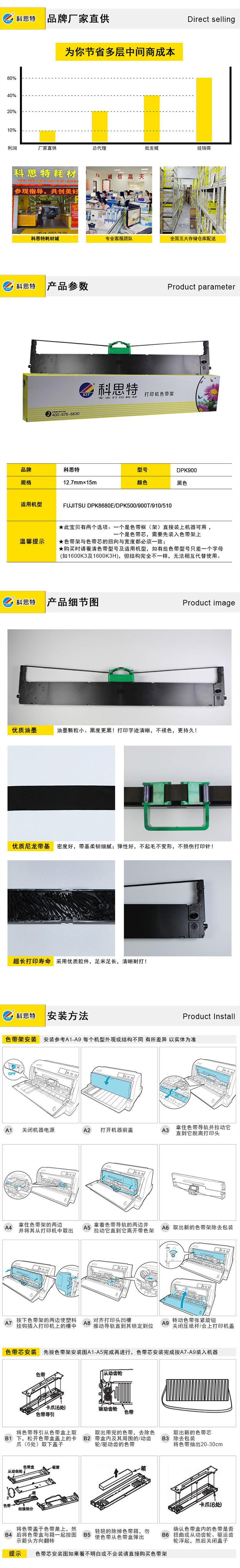 商品名称:科思特 DPK8680E/DPK500/DPK900 色带芯 适用富士通 DPK910/510 头架和带芯焊接在一起 黑色