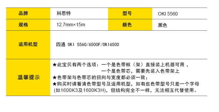 商品名称:科思特 5560/5760 色带芯 适用四通 DP8760C/OKI5560/OKI8450/OKI5760/AR3240/BP690KIII/BP690PLUS 黑色