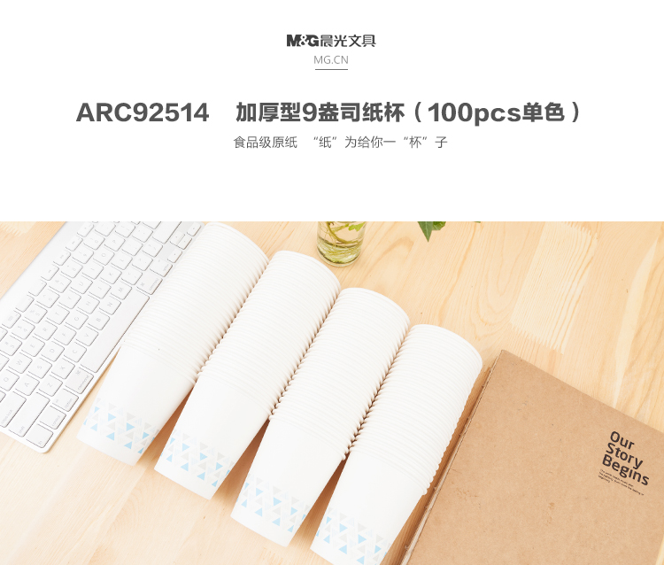 商品名称:晨光纸杯加厚型9盎司(100pcs单色)ARC92514