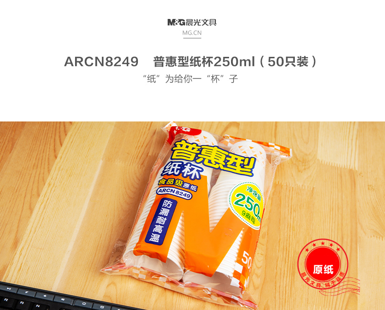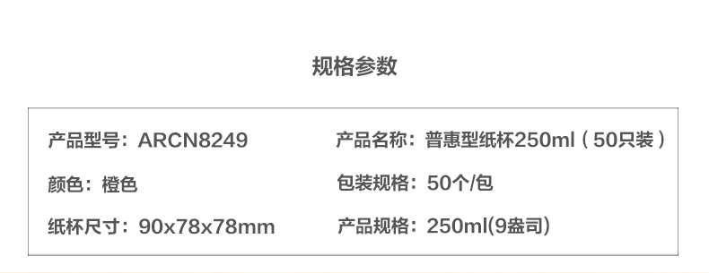 商品名称:晨光普惠型纸杯250ml(50只装)ARCN8249