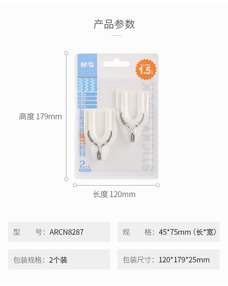 商品名称:晨光U型强力粘钩1.5kg(2只装)ARCN8287