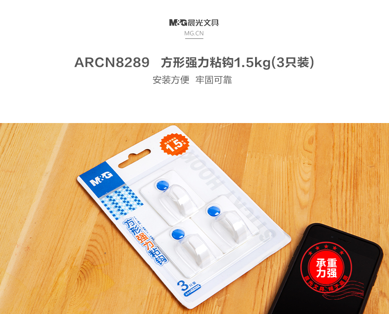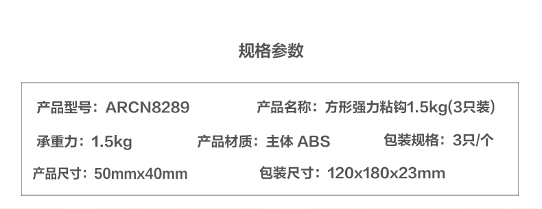 商品名称:晨光方形强力粘钩1.5kg(3只装)ARCN8289