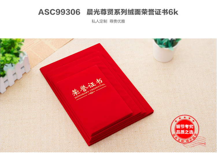 商品名称:晨光尊贤绒面荣誉证书6K ASC99306