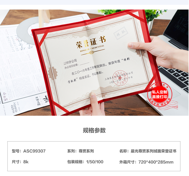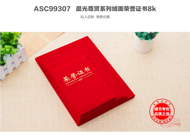 商品名称:晨光尊贤绒面荣誉证书8K ASC99307