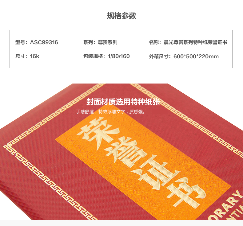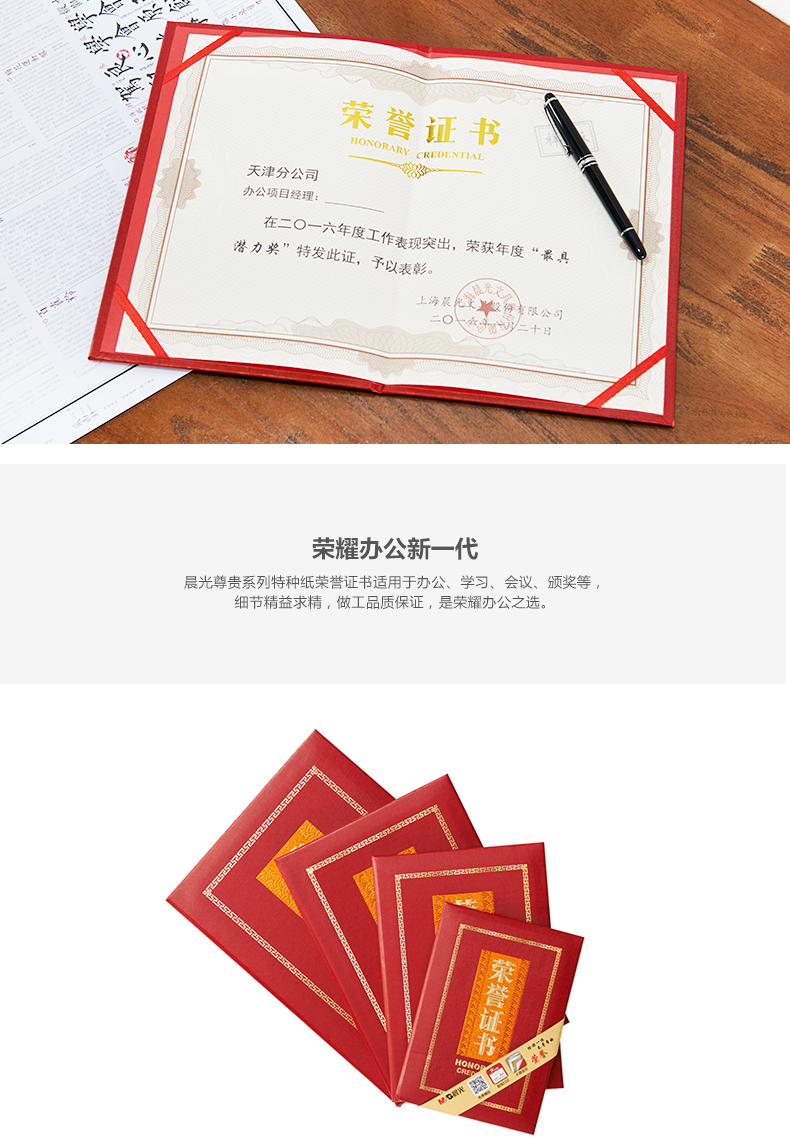 商品名称:晨光尊贵特种纸荣誉证书16K ASC99316