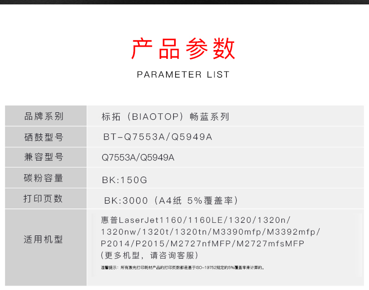 商品名称:标拓(Biaotop)Q7553A/Q5949A硒鼓 适用于:惠普HP LaserJet P2014/P2015/M2727nfMFP/1320/M3390mfp/M3392mfp