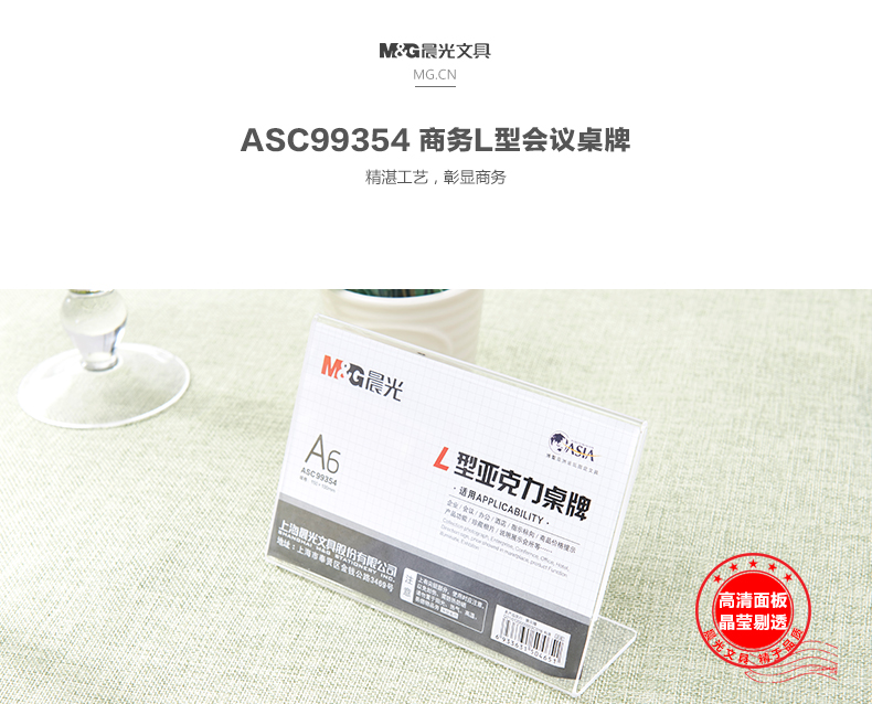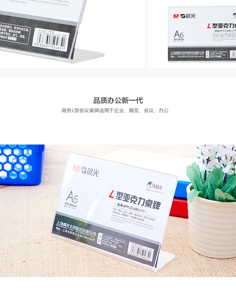 商品名称:晨光商务L型会议桌牌A6(横)ASC99354