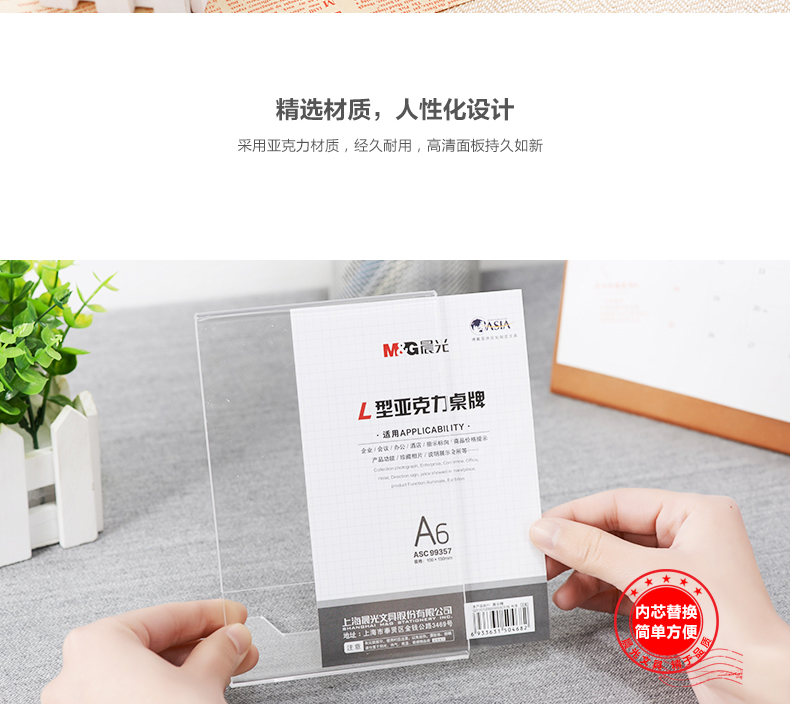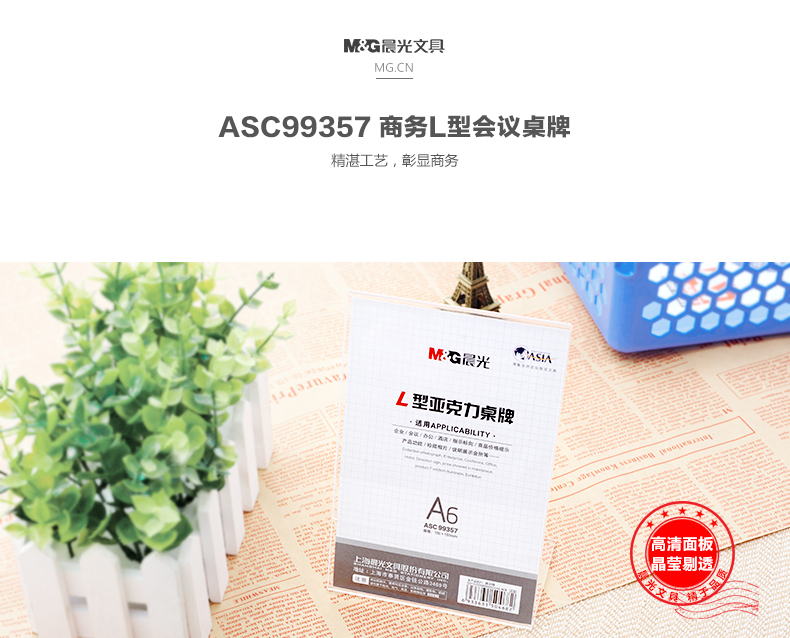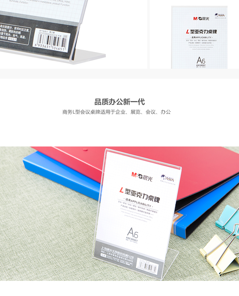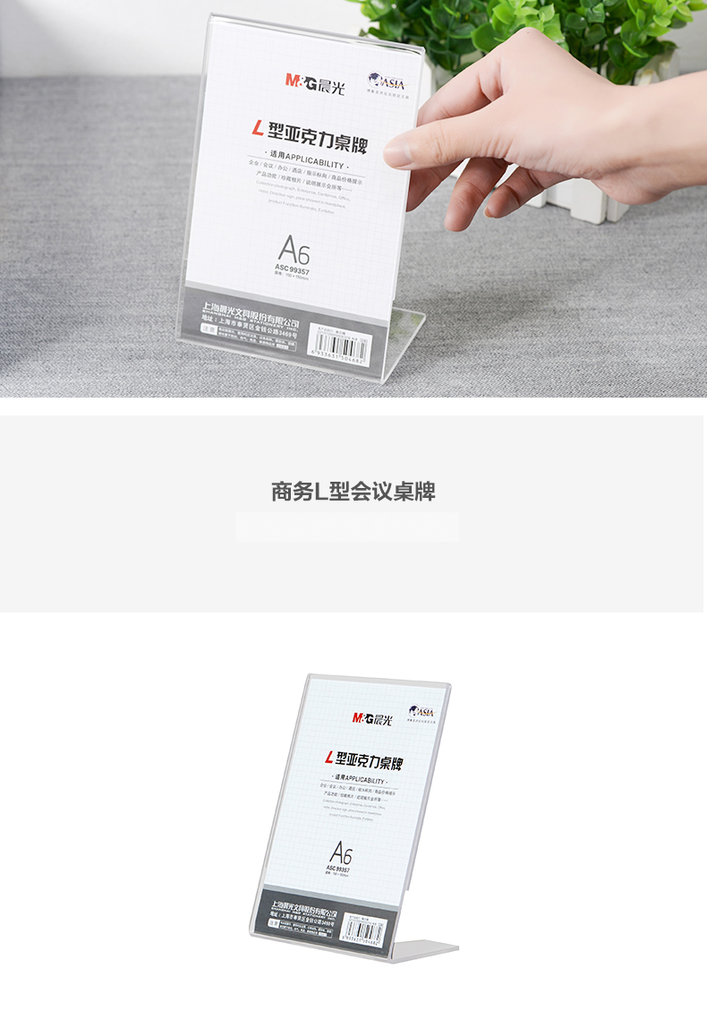 商品名称:晨光商务L型会议桌牌A6(竖)ASC99357