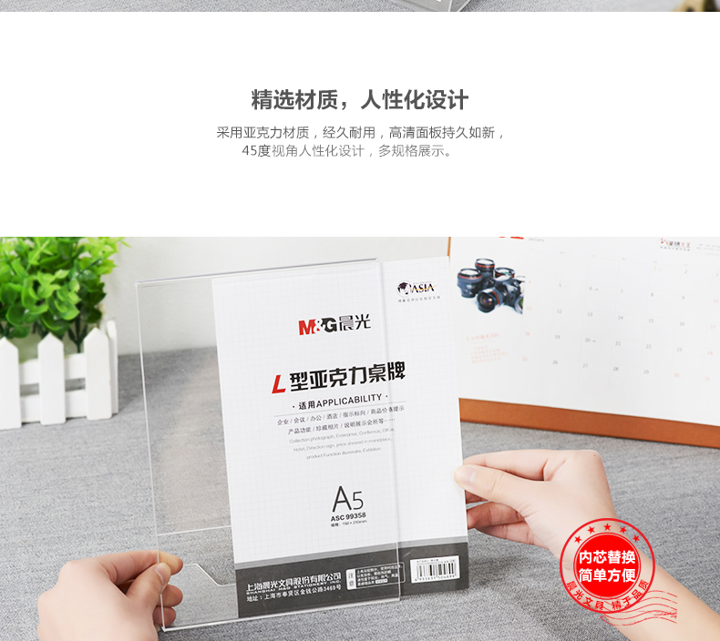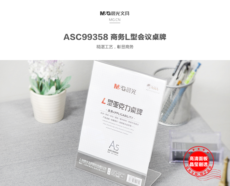 商品名称:晨光商务L型会议桌牌A5(竖)ASC99358