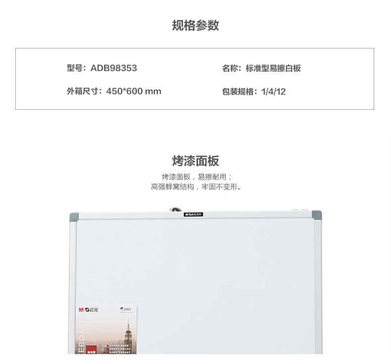 商品名称:晨光标准型易擦白板450*600mmADB98353
