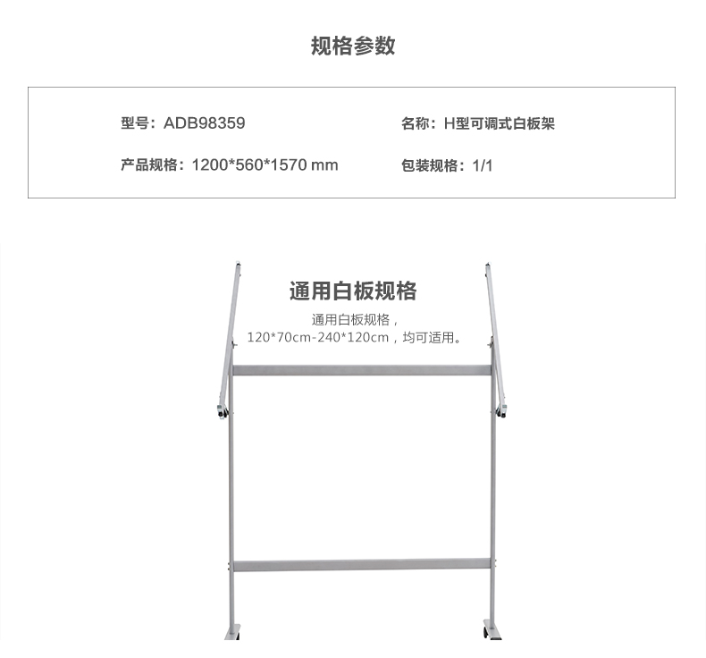商品名称:晨光H型可调式白板架1200*560*1570ADB98359
