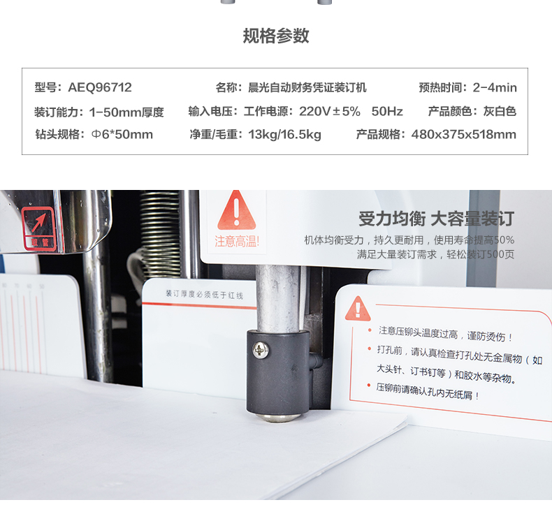 商品名称:晨光自动财务凭证装订机AEQ96712