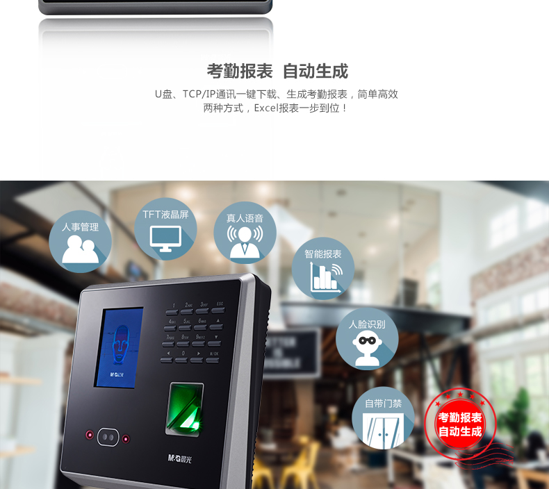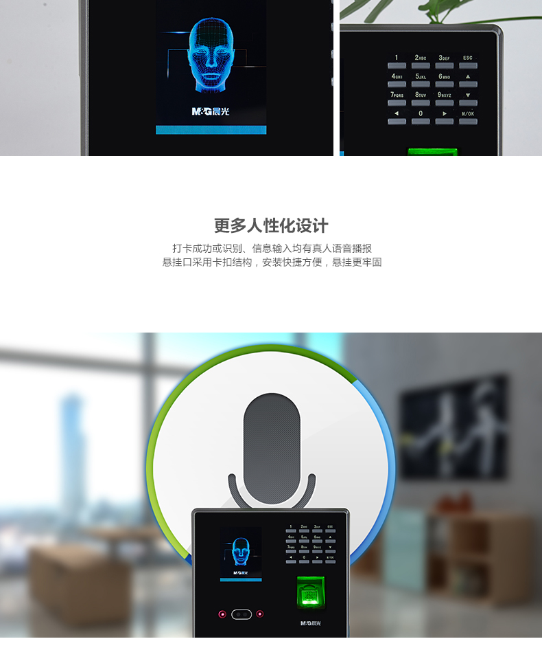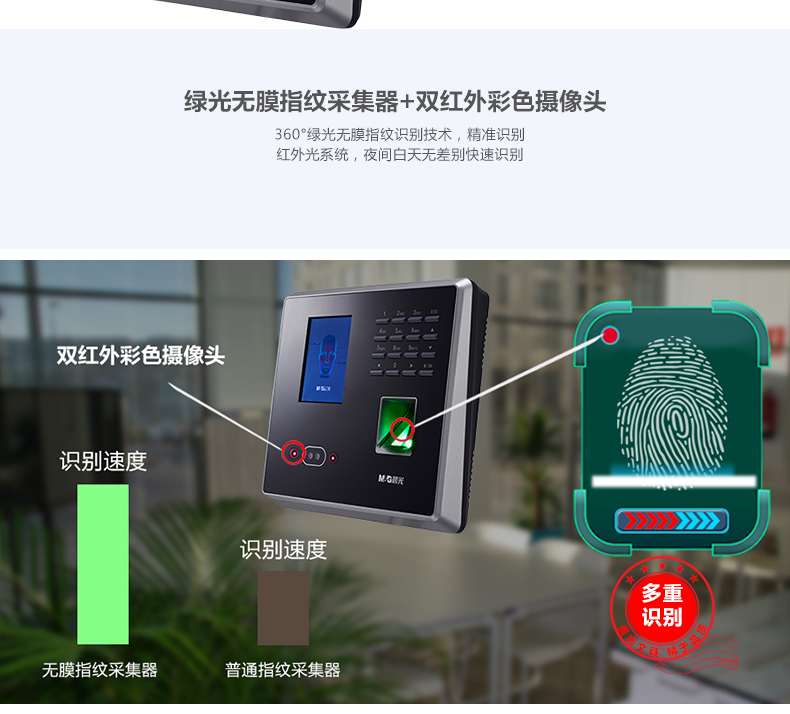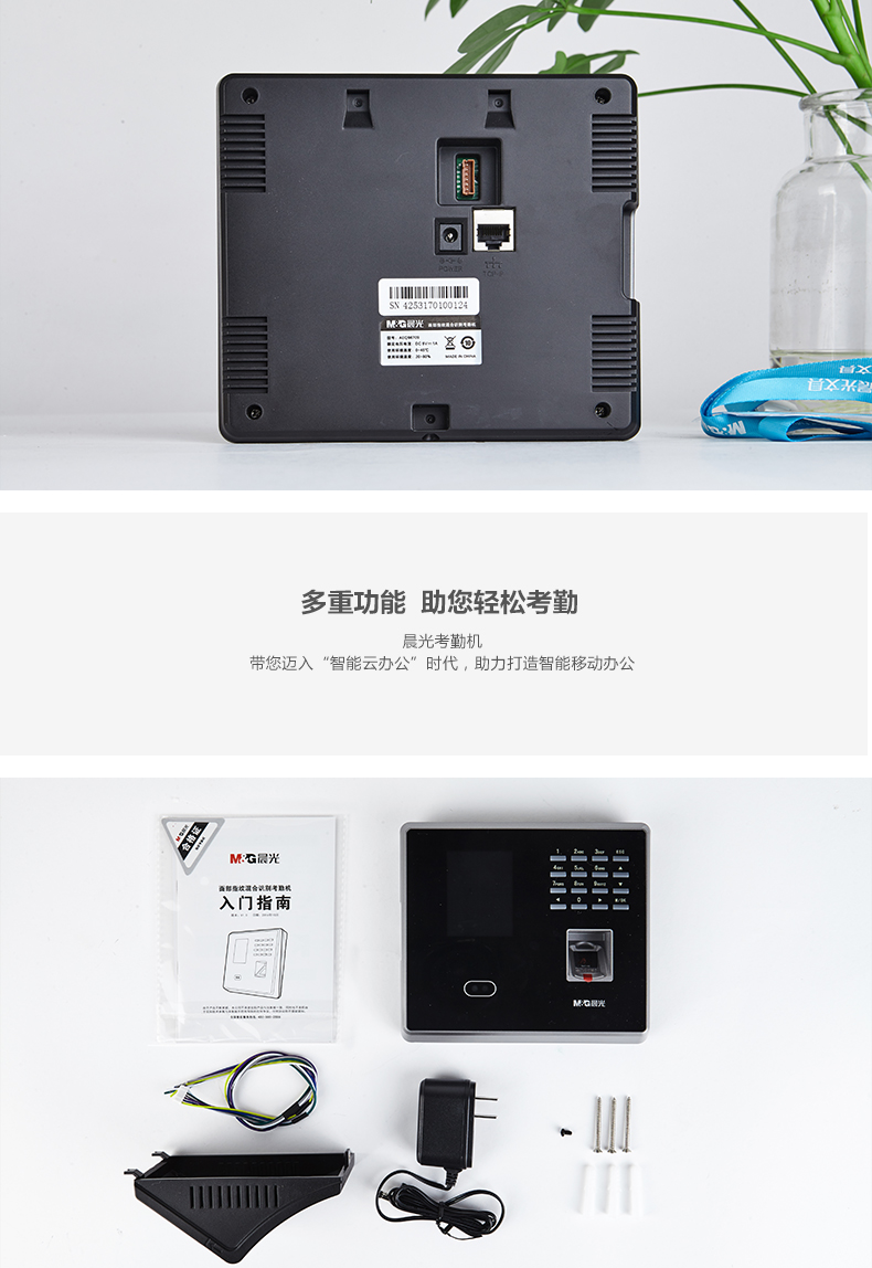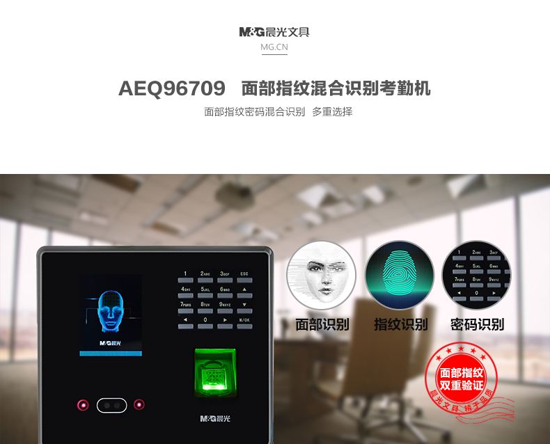 商品名称:晨光面部指纹混合识别考勤机AEQ96709