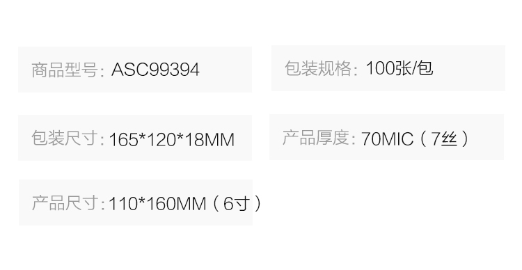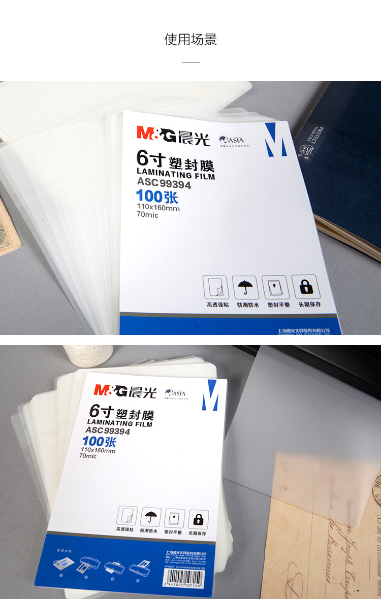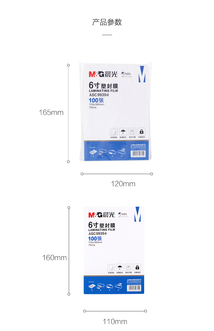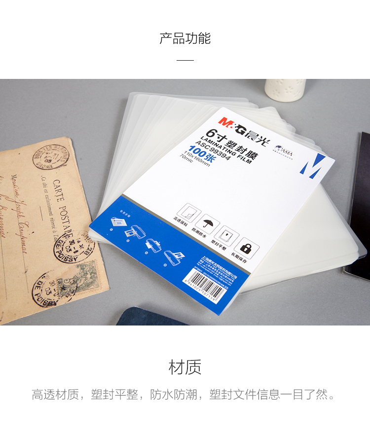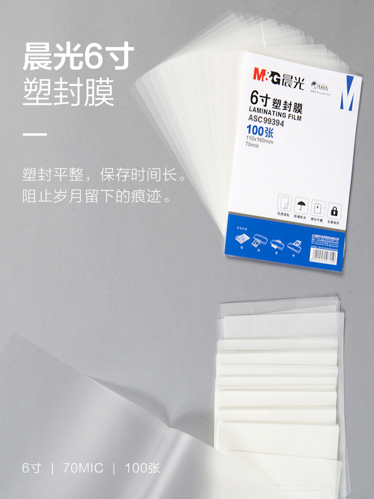 商品名称:晨光6寸塑封膜(70mic)100张ASC99394