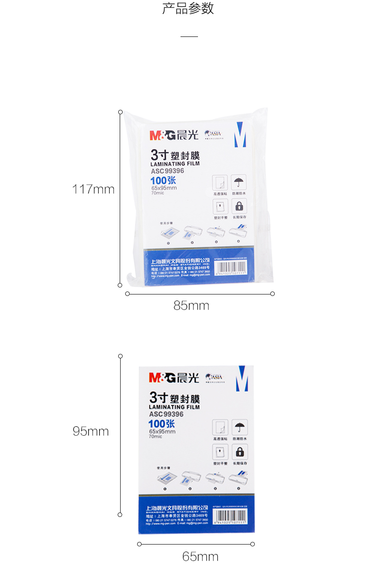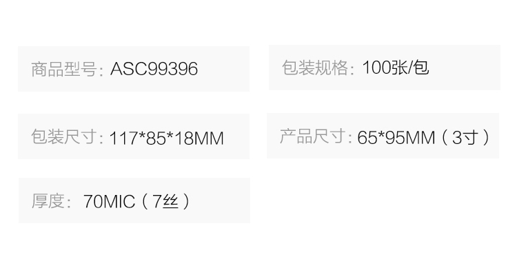 商品名称:晨光3寸塑封膜(70mic)100张ASC99396