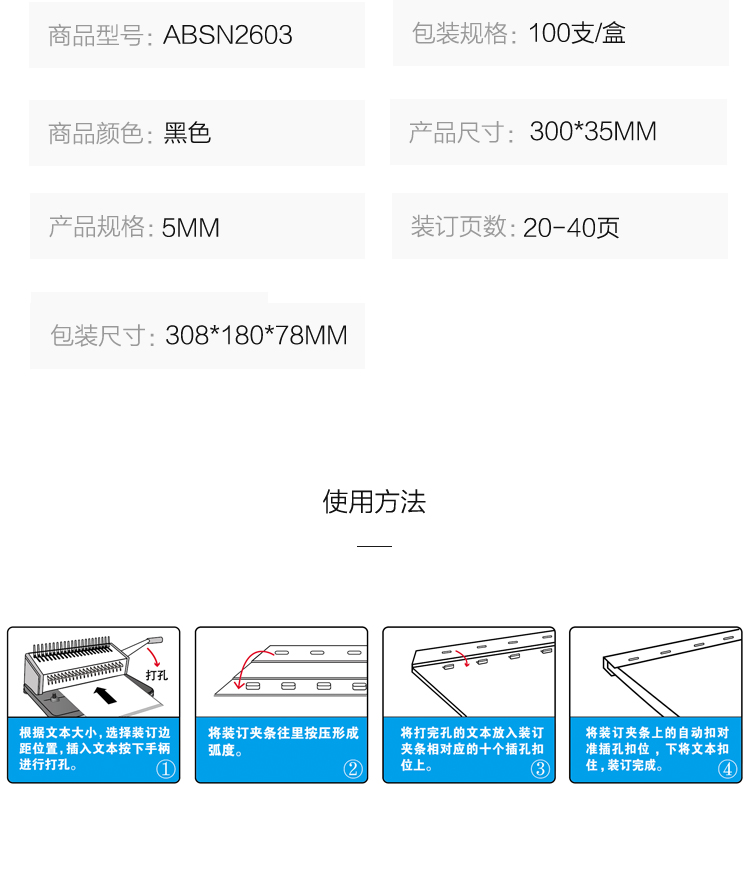 商品名称:晨光10孔装订机夹条(5mm)ABSN2603