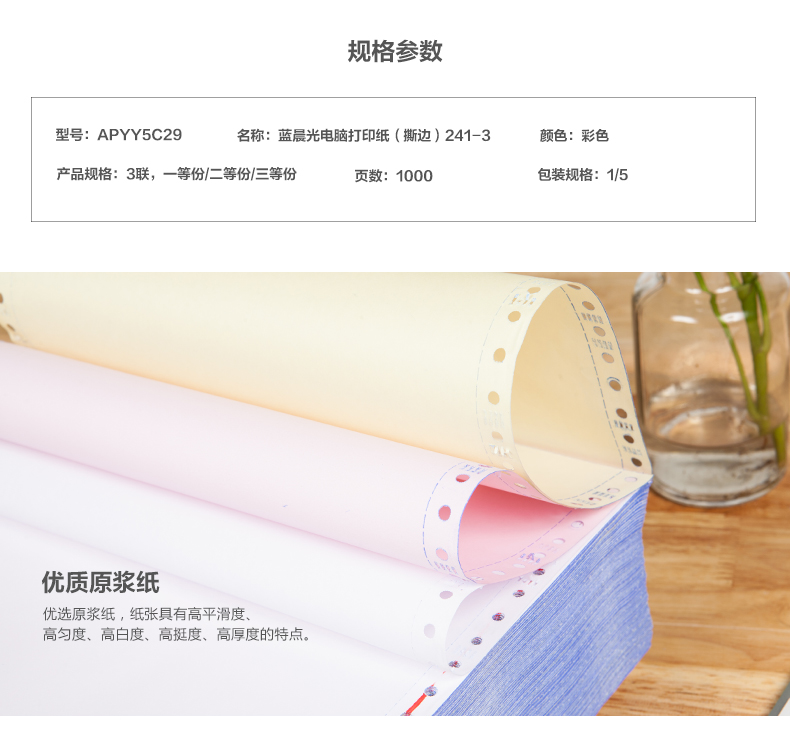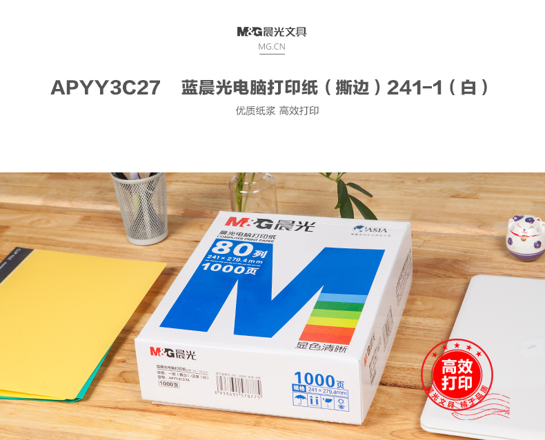 商品名称:打印纸蓝晨光(撕边)241-1(白)1/2APYY3C27B