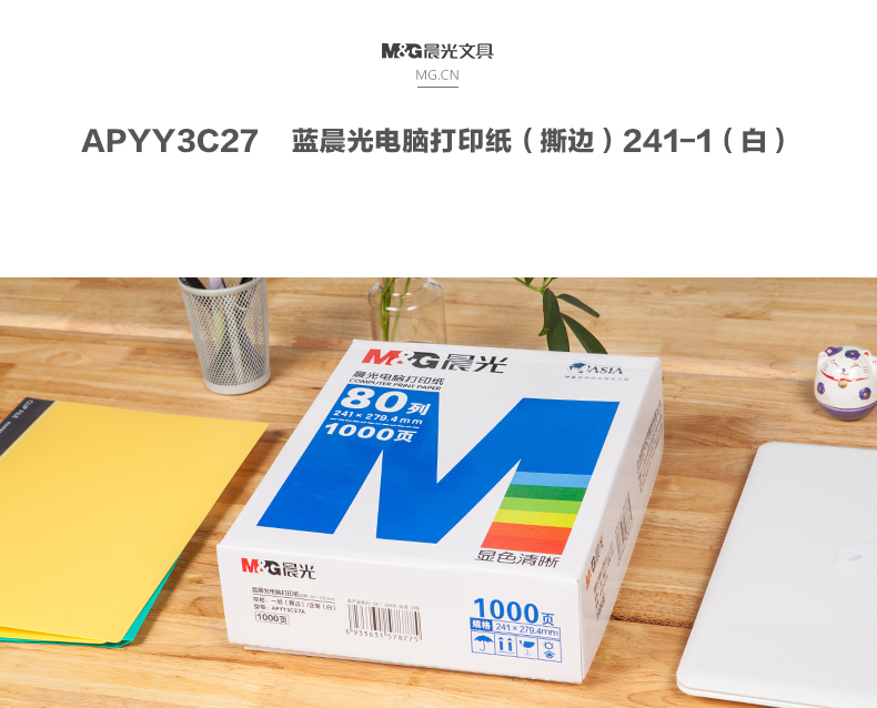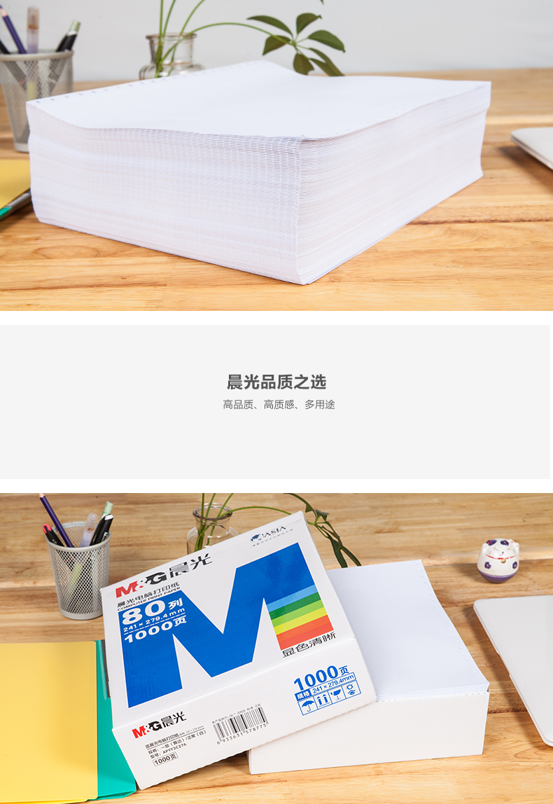 商品名称:打印纸蓝晨光(撕边)241-1(白)1/3APYY3C27C