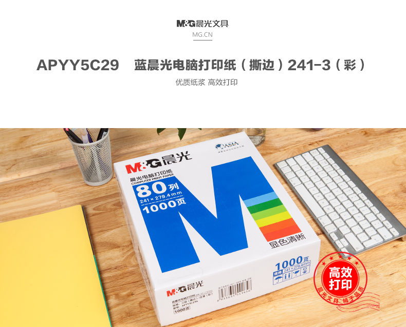 商品名称:打印纸蓝晨光(撕边)241-3(彩)APYY5C29A