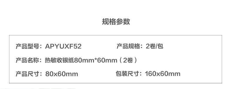商品名称:晨光热敏收银纸80MM*60MM(2卷)APYUYF52