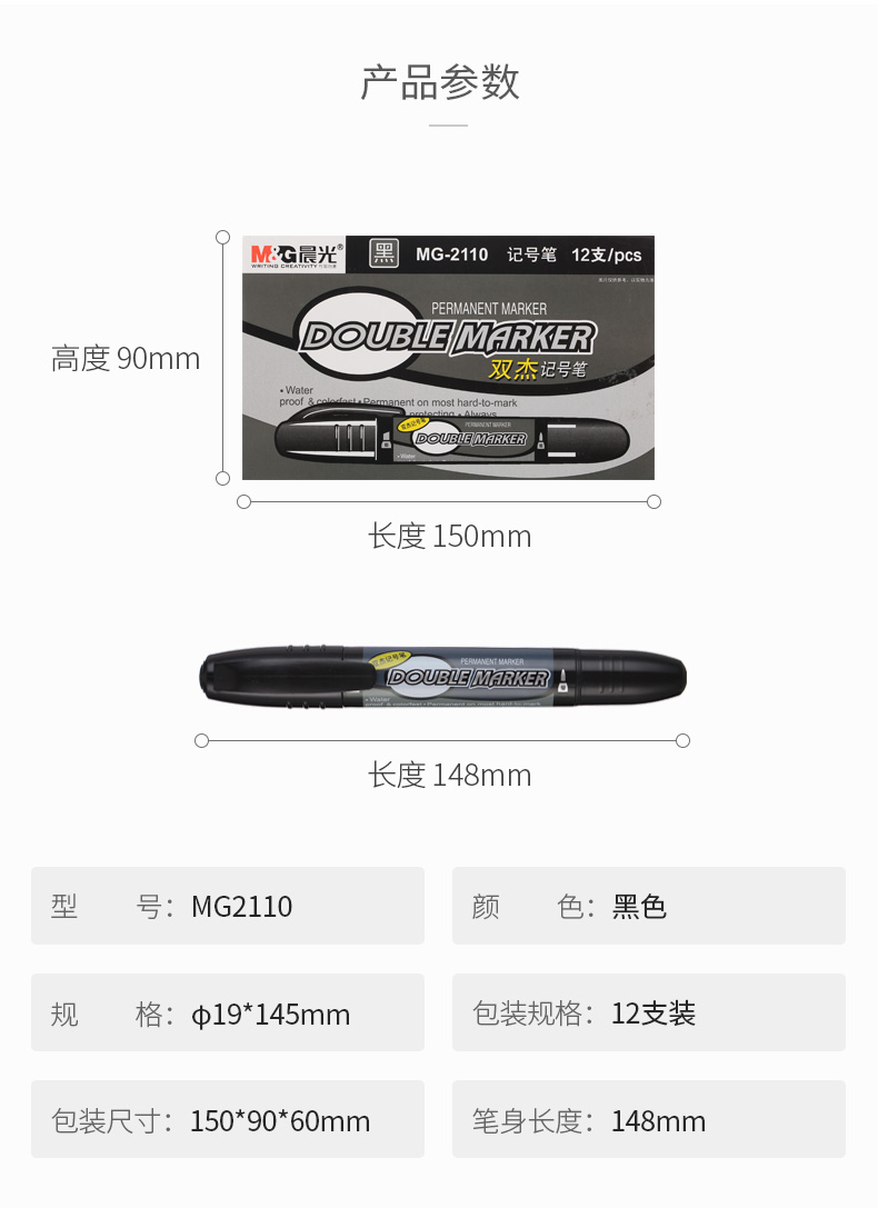商品名称:晨光记号笔双杰MG2110黑 12支/盒