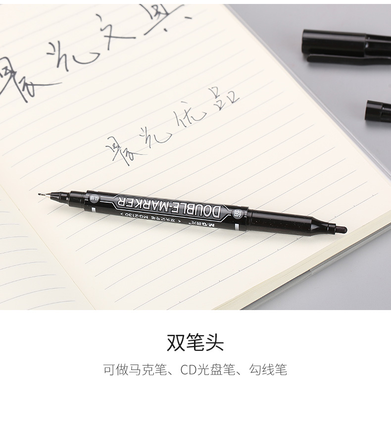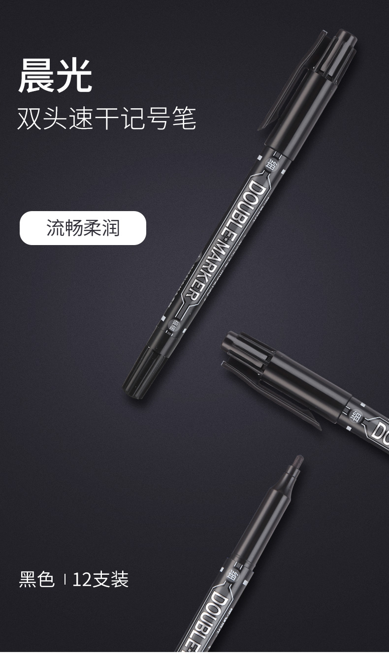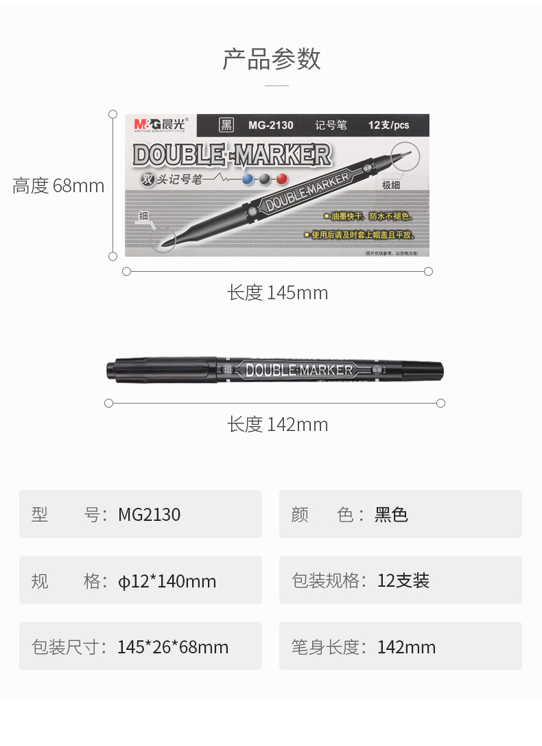 商品名称:晨光双头记号笔MG2130黑12支/盒