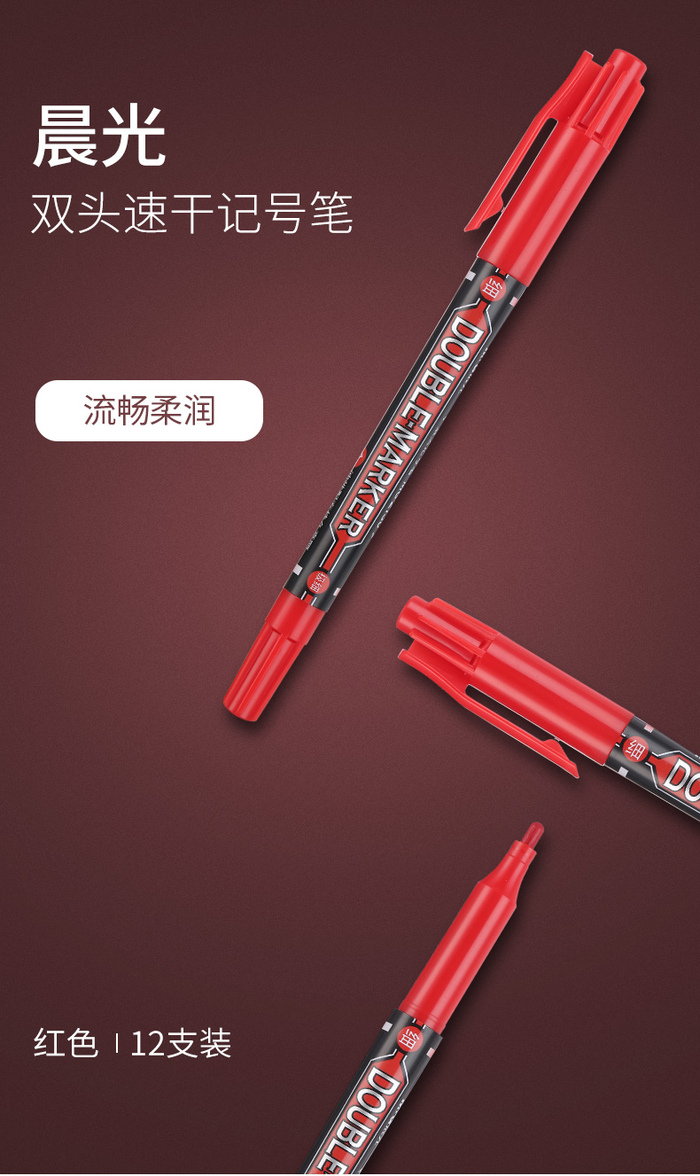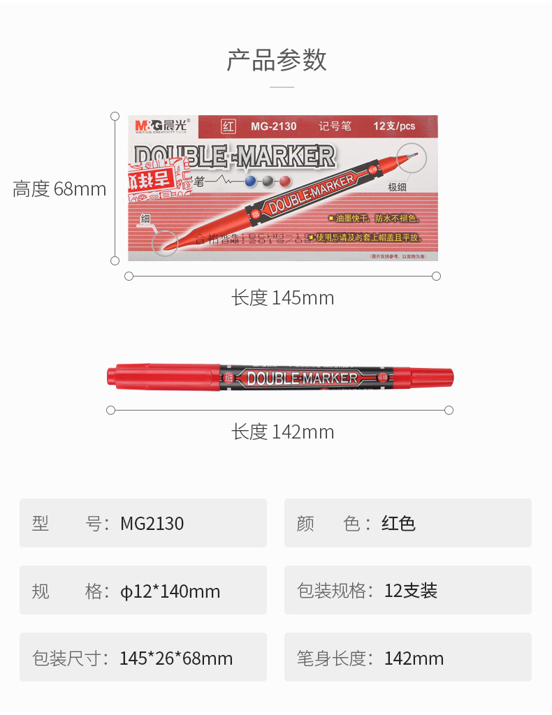 商品名称:晨光双头记号笔MG2130红12支/盒