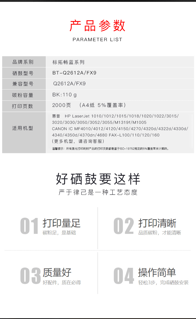 商品名称:标拓 (Biaotop)畅蓝系列 Q2612A硒鼓 适用于:惠普HP1018/1020plus/1022/3050/M1005/M1319f/LBP2900