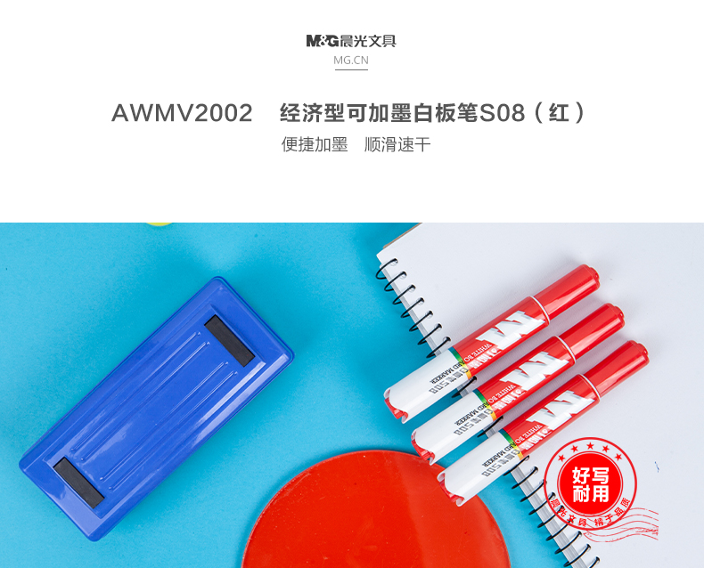 晨光经济型可加墨白板笔S08(红)AWMV2002 10支一盒