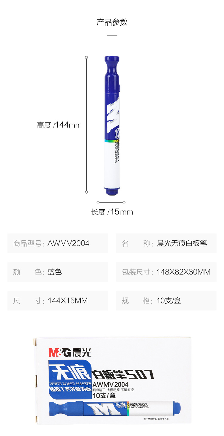 商品名称:晨光无痕白板笔S07(蓝)AWMV2004 10支装