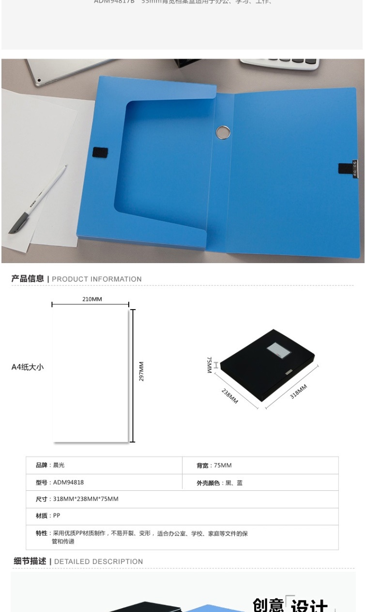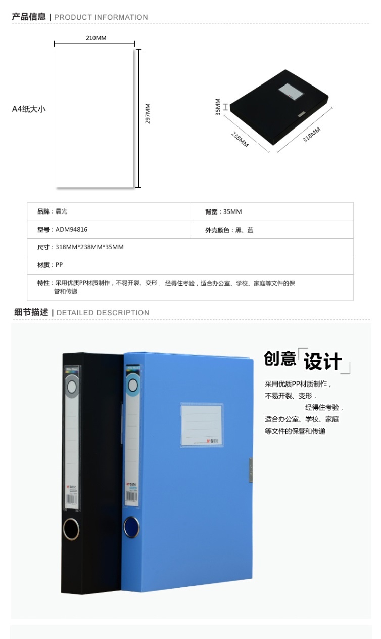 商品名称:晨光35mm背宽档案盒(黑)ADM94816A