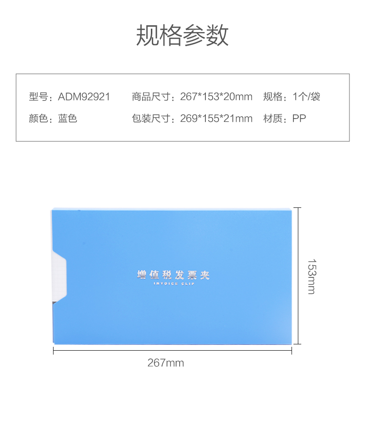 商品名称:晨光增值税发票夹(带外壳)ADM92921蓝