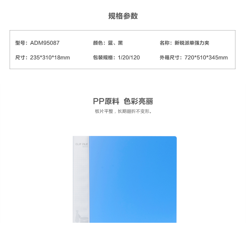 商品名称:晨光A4新锐派单强力文件夹黑ADM95087