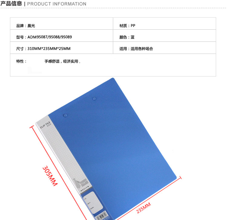 商品名称:晨光A4新锐双强力文件夹蓝ADM95088