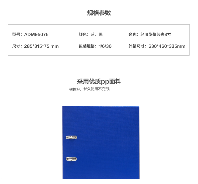 商品名称:晨光经济型快劳夹3寸(蓝色)ADM95076