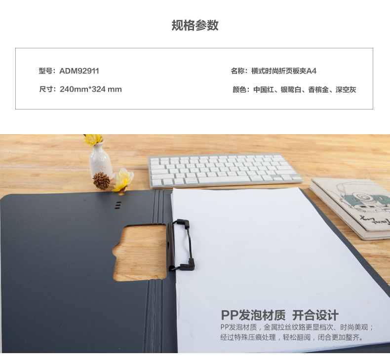商品名称:晨光横式时尚折页板夹A4-ADM92911