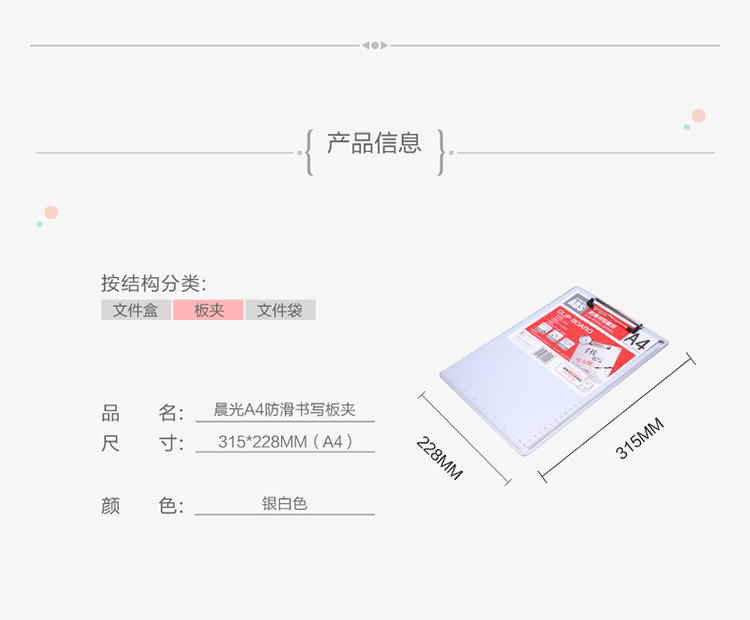 商品名称:晨光板夹A4线型夹防滑书写ADM94863