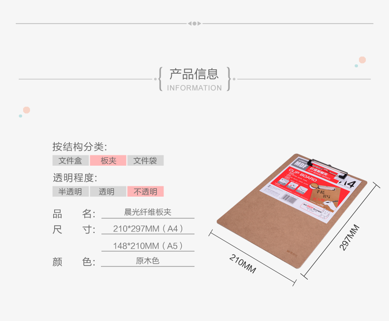 商品名称:晨光板夹A平夹纤维板ADM94877
