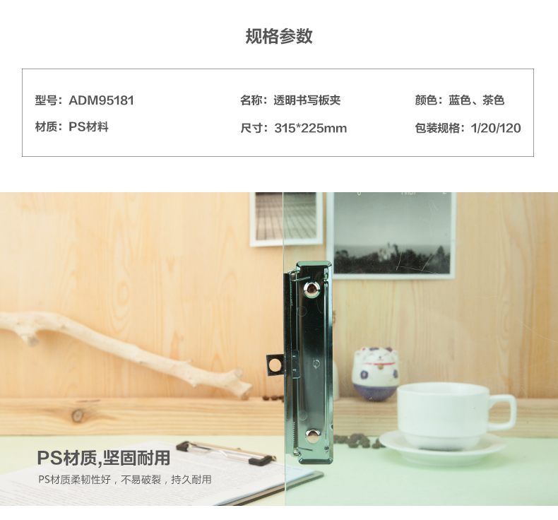 商品名称:晨光透明写字板A4(透蓝)ADM95181