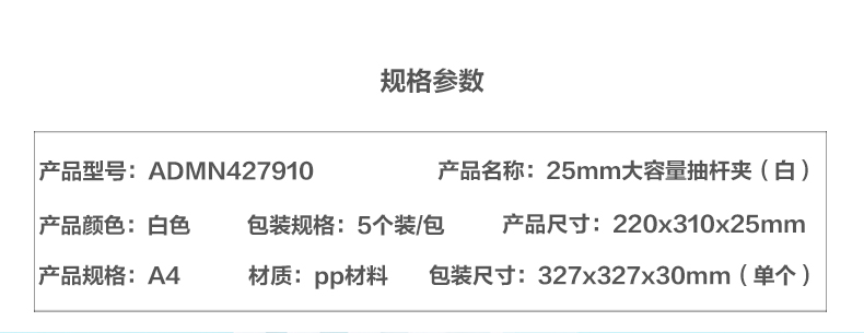 商品名称:晨光25mm大容量抽杆夹(白)ADMN4279 (5只装)