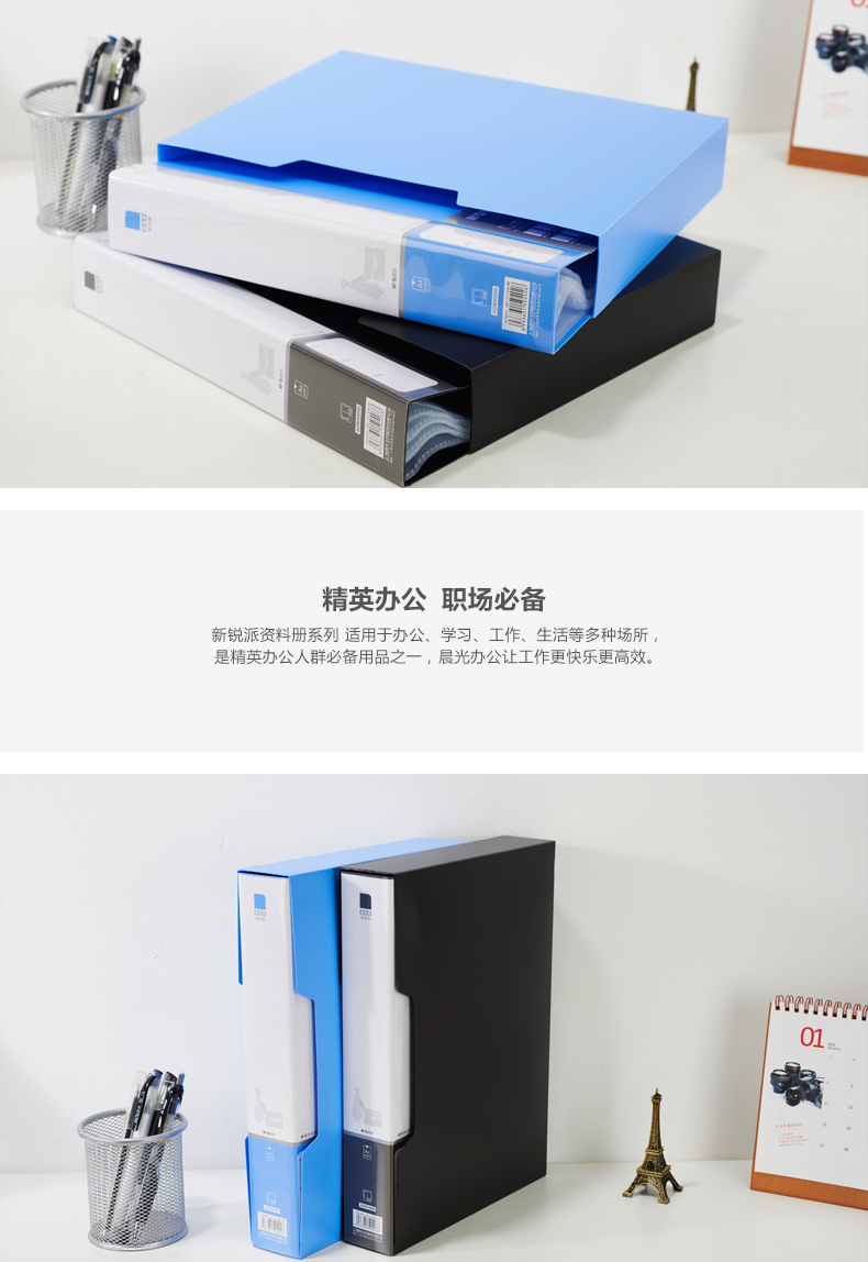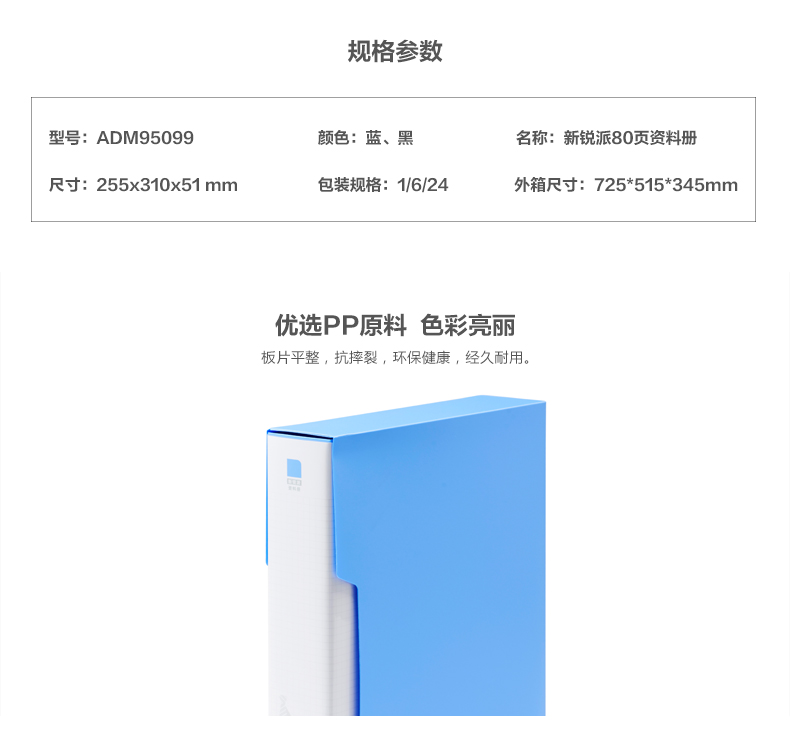 商品名称:晨光80页新锐派塑套资料册蓝ADM95099