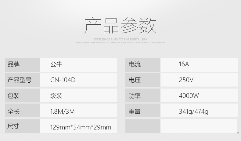 商品名称:公牛新国标 GN-104D 1.8米-1位 插排 1.8米 电源插座
