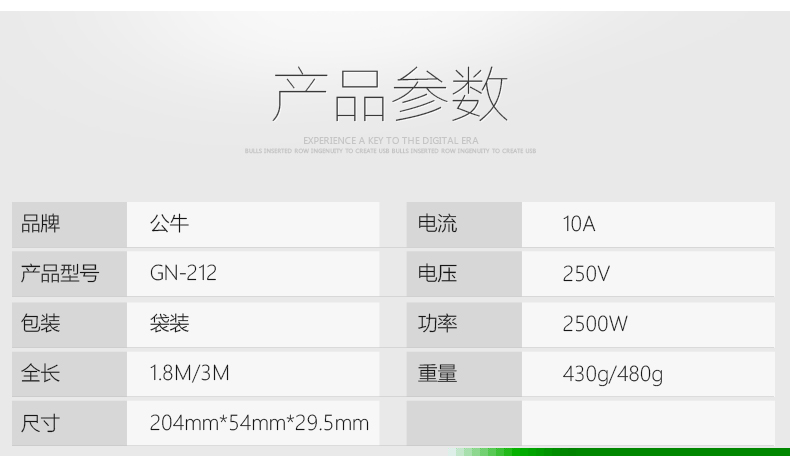商品名称:公牛新国标 212 3米-3位 插排 3米 电源插座