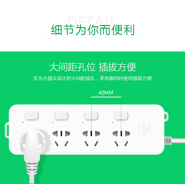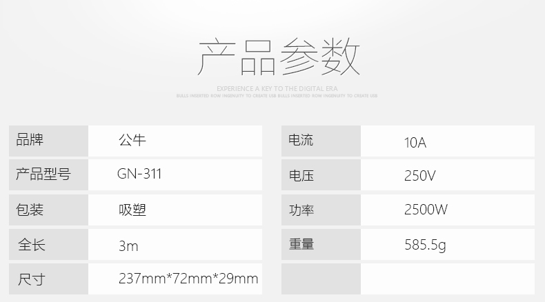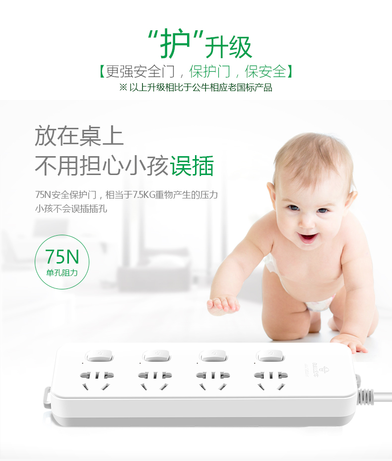 商品名称:公牛新国标 311 3米-4位 插排 3米 电源插座