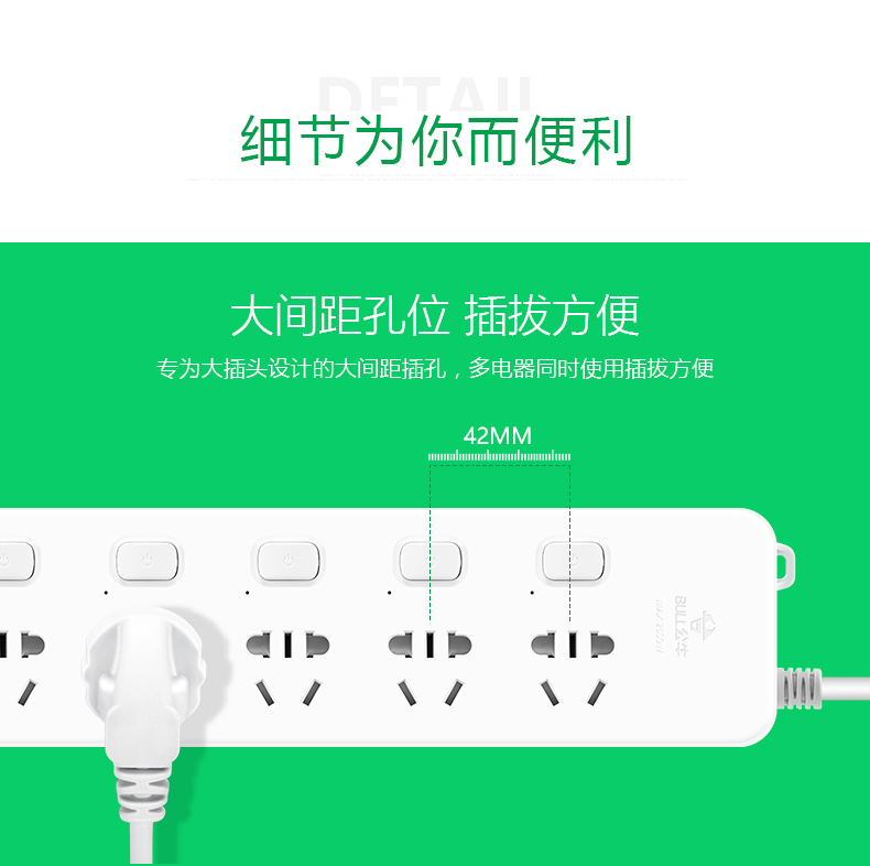 商品名称:公牛新国标 312 3米-5位 插排 3米 电源插座
